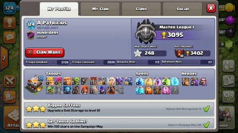 ..én kicsit korán lettem hősök szempontjából th11, mert azt gondoltam, ott is úgy lesz loot, mint korábban th10-el volt, plusz majd több nyersi fér be - th10-en sokszor futottam full tároló limitbe, és azért nem tudtam támadni mert építőre vártam. Most meg, örülök ha van 4x-es star, mert elixírt gyűjteni igencsak nehézkes.
