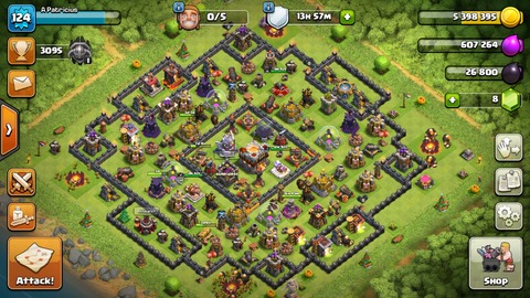 Jelenleg van egy TH7-es külső TH-s falum (6-os fal, 8-10 db 7-es elemmel; 2-es wiz.tower, 6-os íjásztornyok, canon 6-6-7-8, mortar 3-3-4). Az egységeimnél a barbi 4-es, a többi kb. 3-as (kivéve healer és újabbak), és van tegnaptól sárkányom is.