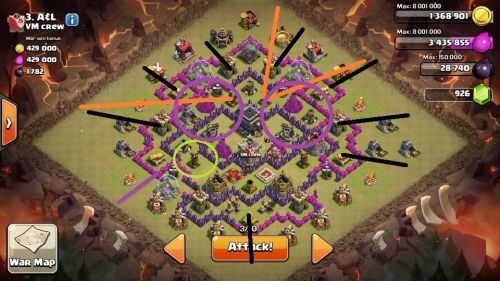 TH9-10 esetén - Laloon és GoHo (surgical fontos; 1-2-3 golemes támadások; AQ walk nem árt)Minden szinten 3 csillagozni kell. Saját, aszimmetrikus war bázis építése, dupla giant bomb csapdákkal, jó egyéb trapekkel, ANTI 3 star felépítés, korrekt AD elhelyezés.