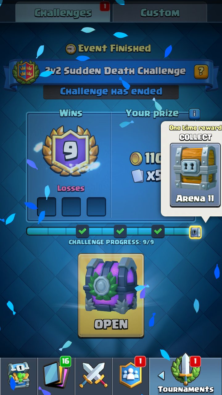 Volt egy hònapig a 2v2 sokan csak ott jàtszottak köztük èn is kèrtem a lapokat fejlesztettem ahogy tudtam mikor vège lett mentem ladderen ès nem csak èn màsok is meglepődve vettèk tudomàsul mennyit erősödtek az ellenfelek.Aki nem fizet a jàtèkèrt azok kb együtt fejlődnek szóval ha nincs valami nagyon op decked igazàn 200-300 kupa mozgàssal ,de nem nagyon tudsz fejlődni.