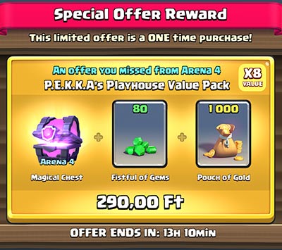 Ma ilyet kaptam, Arena 4 pakk: MC + 80 gem + 1000 gold = 290 forint (8x value)