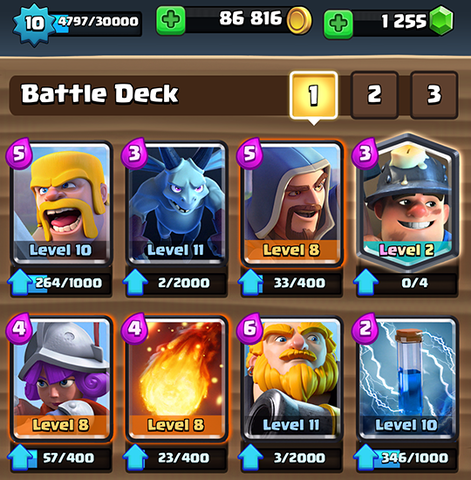 A dekk amúgy ha vki kíváncsi: zap lvl10, arrow lvl10, mega minion lvl7 /előtte lvl10 archer volt/, elixir collector lvl7, lumber lvl2, sparky lvl2, valkyre lvl8, giant lv8.