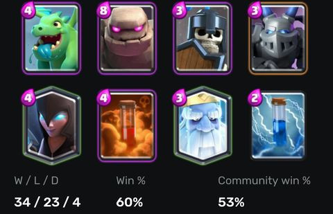 Jack: én sem sok mindent változtattam. Baby dragon ment, majd jött vissza miután kaptam belőle annyit hogy level6 lett(így azért itt izmos, nehezen szedik le). Lightning-ot kivettem, most fireballozok(néha bánom mikor inf.tower jön, de nem sokszor van), skeli helyett nekem tombstone lett.(annyi hog és ebarbi jött hogy kellett valami olcsó épület-már 9-es, nagyon megszerettem. Most a log se tarolja le ,hármast nem de 1-2es logot túlél-egy ideig volt lumberjack helyette, de az nem vált be olyan jól-igaz mikor a nightwitch-et berage-elte az brutális takarítást végzett, igen ewizz-NW csere nekem is volt. Próbálkoztam dupla witch-el, mert giant mögött jól szuperált kiskarimnál, de gólem möggé már drágának bizonyult)