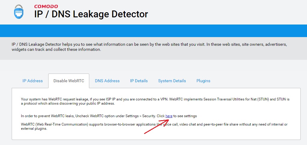 The Comodo IP / DNS Leakage detector is an add-on extension in Dragon that aids in identifying what information would be available to websites that you visit. By default your IP information is available to websites and you can disable the plugins and Web RTC options in settings to prevent IP Leakage.