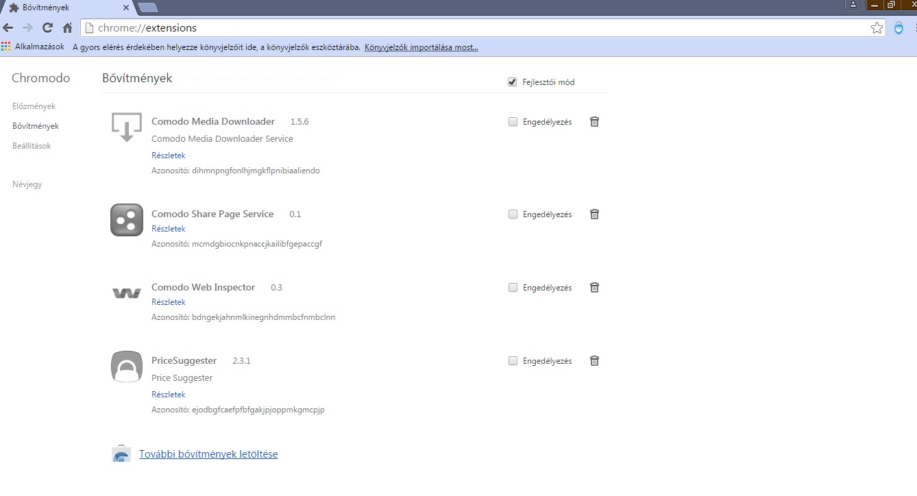 chrome://extensions, akkor ott nem jelenik meg?