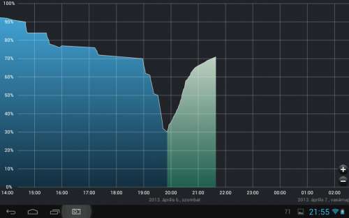 Csutortokon jott nekem a tab.Elso kutyu nincs viszonyitasi alapom. Keretet kicsit a helyere kellet pattintani mert elallt a kijelzotol,de amugy sem anyira patent kicsit lotyog de 2 nap utan mar nem feltuno . Akkut elso este toltottem reggelre full volt. Tegnap feltettem az akkumulator HD progit tehat nalam a kovetkezokent alakult a toltes.