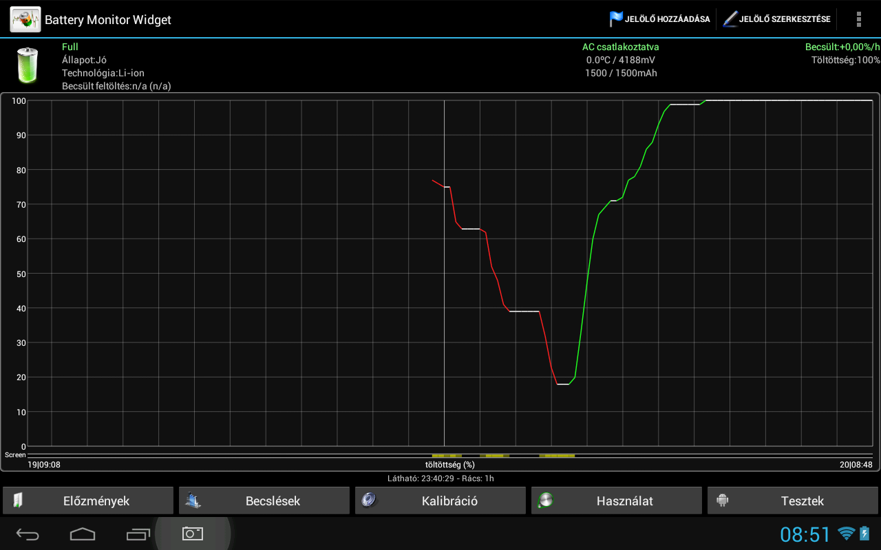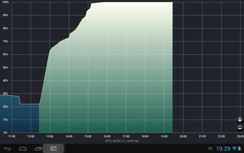 Péntek raktam fel a frissítést, és a töltés 19 % -ról 100% -ra 3 óra alatt megvolt. A grafikon gyakorlatilag szinte ugyanaz mint amit előbb gogabi belinkelt. Nagyon sokat nem nyomogattam, csak kevés netezés volt rajta, viszont ami eredményt eddig produkált nagyon is lenyűgöző: