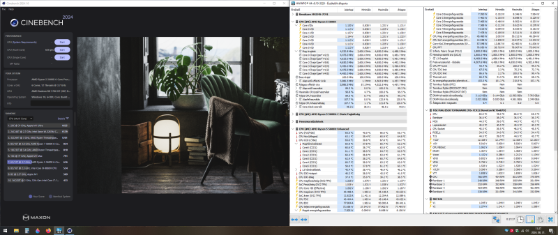 ID-Cooling A620 PRO SE teszt, gyári ventilátorok, Arctic MX-6 paszta, CO -30 All Core, Cinebench 24 Multi Core.