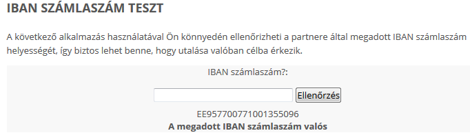 Van a bank honlapján egy IBAN számlaszám teszt, az felismeri: