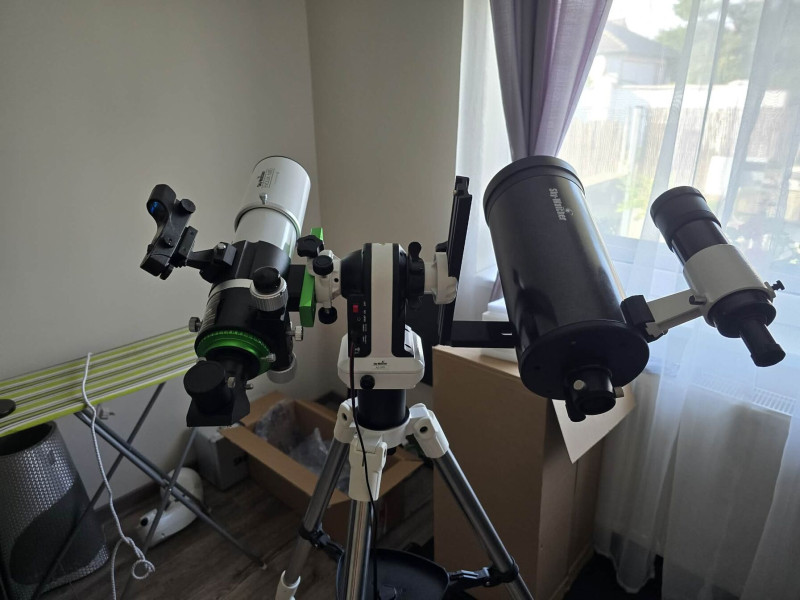askar 120 apo, rajta a reduktor, 294 mc pro, asi air, 9x50 vezető, 120 mini vezetőkamera.