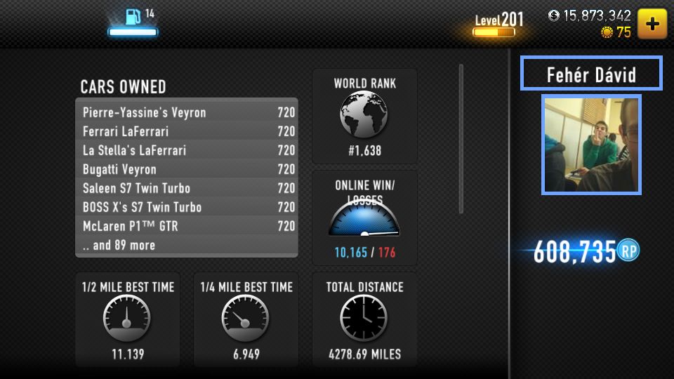 Bár a drag pacot azt vagy 2 kocsihosszra otthagytam azt tényleg nem értem hogyan nem lett meg valakinek (kivétel akinek kifagyott a game)....mondjuk nekem is volt már olyan hogy a bossos versenyt elcsesztem ezért is nincs meg sok boss autó. Am nekem is laggmentesen fut LG F6 on . -
