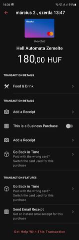 Ha a sikertelen vásárlás után mégis lekönyvelik az összeget (ez jóval gyakoribb, a Go Back in Time menü aktívvá válása jelzi, hogy ez meg fog történni), a levonás mellett később lesz egy ugyanakkora összegű jóváírásod is. Mostanában az elutasított, a bankod által mégis lekönyvelt vásárlásokat legkésőbb a tranzakciót követő 15. napon téríti vissza automatikusan a Curve rendszere (ezt a lenti jobb oldali képen látható felirat jelzi), de egyes esetekben már a kilencedik napon elindul a visszatérítés. Ha 15 nap után sem történik semmi, érdemes panaszt tenned. Ha írsz a supportnak, a visszatérítési folyamat talán meggyorsítható: az appban tegyél bejelentést (Launchpad -› Support -› Chat -› New Conversation -› Transactions -› Declines), de készülj arra, hogy kérni fognak valamilyen igazolást/bizonylatot arról, hogy a tranzakció sikertelen volt, és arra is, hogy képernyőmentéseket már nem fogadnak el elutasított internetes vásárlásokról. Ha egy vásárlásod zárolásban ragadt, ugyanezen az útvonalon megpróbálhatod elkérni a zárolás Curve általi visszavonását igazoló RRN (Retrieval Reference Number) tranzakcióazonosítót, amelynek birtokában a bankod ügyfélszolgálata tud segíteni a zárolás manuális feloldásában.