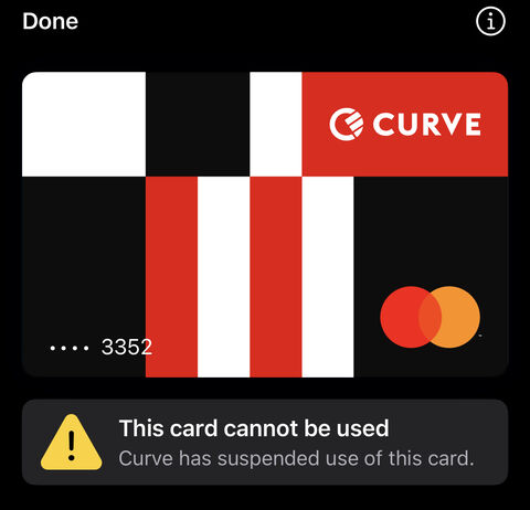 ugy tunik, a kartyamnak annyi. a support szerint nincs rajta semmi korlatozas (Also, I can confirm that your Curve Card is still fully active and ready to use!), de minden declined. apple pay, fizikai erintes es fizikai chip+pin is. mintha megszunt volna letezni ez a kartyaszam. a felesegem kartyaja is benne van a walletban, az mukodik