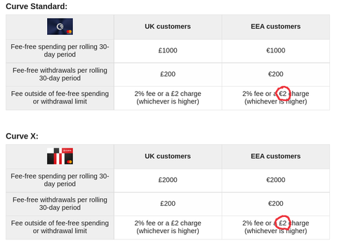 Azt hinné az ember, hogy biztosan csak elírták, de nem, mert a héten sikerült belefutnom ebbe, túlmentem a 200 eurón és felszámolt 2.32€ díjat. Sehogy se értettem, ez hogy jött ki, aztán végül észrevettem a 2 GBP-t a táblázatban és láss csodát 2 GBP = 2.32 EUR