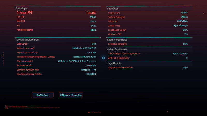 Kapcsolj be egy FSR4 Native AA-t és meglátod, hogy mennyivel jobb lesz a kép.A Quality FSR4-gyel beszámolók szerint van egy kis baj Cyberpunk-ban és több a zizegés, mint Balanced-en. Kicsit gyengébb FSR4 profil töltődik be, de már szóltak a a kiszervezett fejlesztőknek, akik átvették a játékot. Akik amúgy elég pocsék munkát végeznek, látszik is a minőségen.