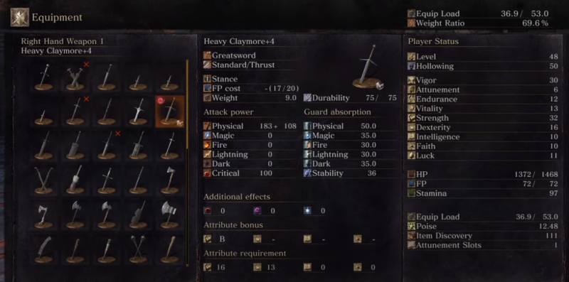 Egyébként az Astora inkább dex felé dől, azzal jobban skálázódik. A claymore meg vegyes v. str. -