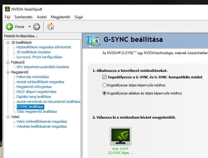 Nincs exkluzív fullscreen a játékban, driverben pedig a fullscreen a default beállítás Gsync On mellé, erre állítsd át:
