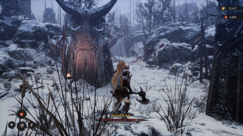 Engem személy szerint az Elden Ring, a hatalmas openworld-jével teljesen kikészített már, addig a Khazan fullosan lineáris, de ezt úgy kell érteni hogy a pálya szinte csak cső felépítésű és őszintén szólva, nekem ez jobban bejön. Viszont a pályadizájn sajnos túl egyszerű, ahogyan maga a térkép kinézete is. A demóban csak is kizárólag egy havas, hegyes vidéken bolyongunk és a térképnek a közepe és vége is pontosan ugyanúgy néz ki mint az eleje, szóval nem igazán látványos és emlékezetes.