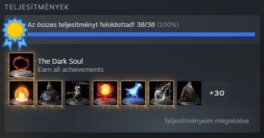 Végül ez is meglett. Bár nem így indultam meg a játéknak így a sokadik visszatérés után sem, de végül az NG+ második felénél mivel úgy tűnt annyira nem állok messze tőle, megcéloztam ezt a küldetést. NG++ végére sikerült is.