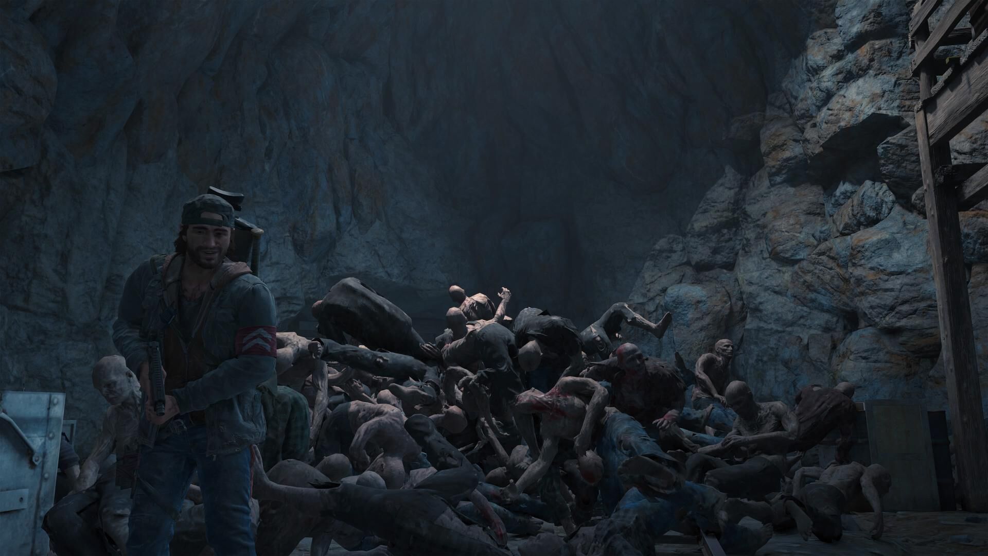 Amikor elözönli a barlangot a horda, akkor gyorsan leraktam az összes mozgásérzékelős aknát és elfutottam a 3.14csába. Ez annyira sikerült, hogy a robbanások után nem is hallottam, hogy jönnének utánam. Mondom oké, akkor megyek vissza értük. El is értem egy sziklaperemig, oda másztak fel egyenként, de nem is folyamatosan, így kényelmesen ütöttem le őket, aztán meg hangtompítóssal lövöldöztem őket, amikor egyszer csak rámspawnolt az egész bagázs, de írd és mondd, egyszer csak benne voltam a sűrűjében, megjelentek körülöttem és még most sem tudom, hogy keveredtem ki közülük. Ez vmi glitch volt? Alább a videó. Nagyjából itt is ez látható, ami velem történt, hangjuk sem volt, egyszer csak ott teremtek. Oké megvolt, videó, barlang előtt vagyok, majd Brian. Gondoltam vissza kéne mennem a sok fülért, tényleg, vki mondja már meg érdemes-e, mert egyelőre nem találom a barlangot és el is keveredtem mert egyszer csak Deacon megszólalt, hegyi oroszlán, mondom oké, letojjuk, nem téma. Erre elordította magát mellettem egy rikoltó, stamina nullázva, lenyomom, jön két korcs, majd egy zúzó. Oké, zúzó éppen bírta még a törődést, amikor megjött két farkas, megvoltak, de kezdtem kimerülni eü. ellátmányból, amikor megjött a puma is. Amikor mentem volna a motoromhoz, akkor feltűnt mellette egy zombi medve. Mondom miért? Ezt most miért? Mert bementem abba a qrva barlangba? Most már mindent lehet? Szerencsére jött egy motoros, elment utána a zombi maci, én meg olajra léptem, már csak az a kérdés érdemes-e megkeresni a barlangot a fülekért? Lakik most egy igazi horda és ez csak egy scriptelt hordának volt a támadása? Vagy hagyjam a francba? -