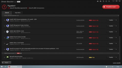100+1 ilyen program van sőt webes driver adatbázis is, abban viszont egyetértek, hogy ha valami működik a gyári driverrel, akkor azt hagyjuk is békén. Első körben csak a problémás drivert keressük meg és telepítsük egyenként! ne halomba az összeset egyszerre, mivel utána fogalmunk se lesz, hogy melyik a hunyó ami miatt nem megy a masina.Utóirat: nekem helyből 33 elavult programot írt