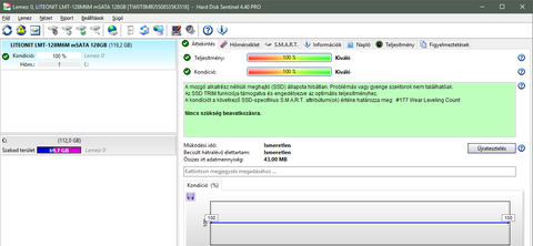 A gyári egy SK hynix SC311 SATA 80mm 128GB M.2 SSD-t (530/190MB/s)