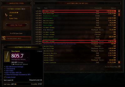 Nyilván attól függ ki vásárol épp,milyen kínálat mellett.Ami biztos,hetek óta nem láttam ilyen cipőt gold AHban -ráadásul ez PVP-re elég überelhetetlennek tűnik,csak az armor hiányzik róla (A várható arénás jelleg miatt biztosan lesznek health globeok,vagy abból akit leölsz,vagy simán spawnoló és felkapkodható).És ott a még jobban keresett +magic findos hasonló cuccoknak sok értelme nem lesz.