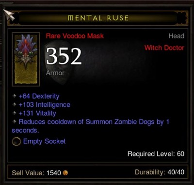 Ehhez kell egy socketes setes sisak egy bazi nagy piros kavicsal és még 2 tárgy a settből (Cains memory). Meg aztán gondolom nem 1 órácskát játszik naponta.