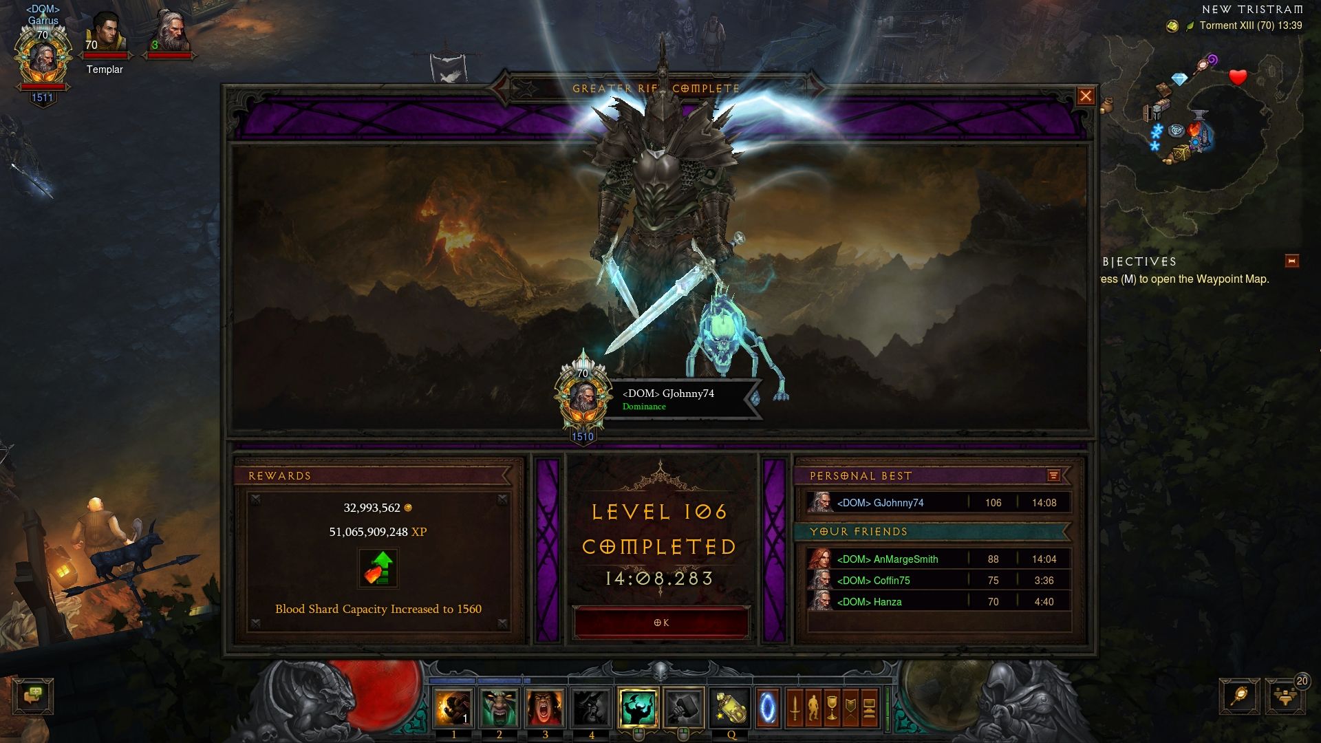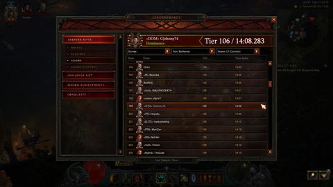 Mi a haverokkal úgy csináltuk meg a 6 set-es GR55 conquest-et, hogy partyban egy egyik játékos erős fő karakterhez (crus) bejött kőhúzáskor, meg sima riftekre a másik játékos gyenge másodlagos (barb) karaktere. A gyenge karakternek esett cucc rendesen, valamint a shardokat is el tudta költeni. Az erős karakter játékosa a kapott shardokat el tudta költeni a saját gyenge másodlakos (barb) karakterére váltva, valamint a másik játékos barb karakterének esett fölösleges set és egyéb cuccokat megkapta. Ezzel pár nap alatt megvolt a másodlagos karakterrel is a GR55. A GR55 höz szinte mindig teljesen elég csak maga a full set, egy-két kiegészítő leg-el. Még van két hónap a szezonból, bőven van idő erre.