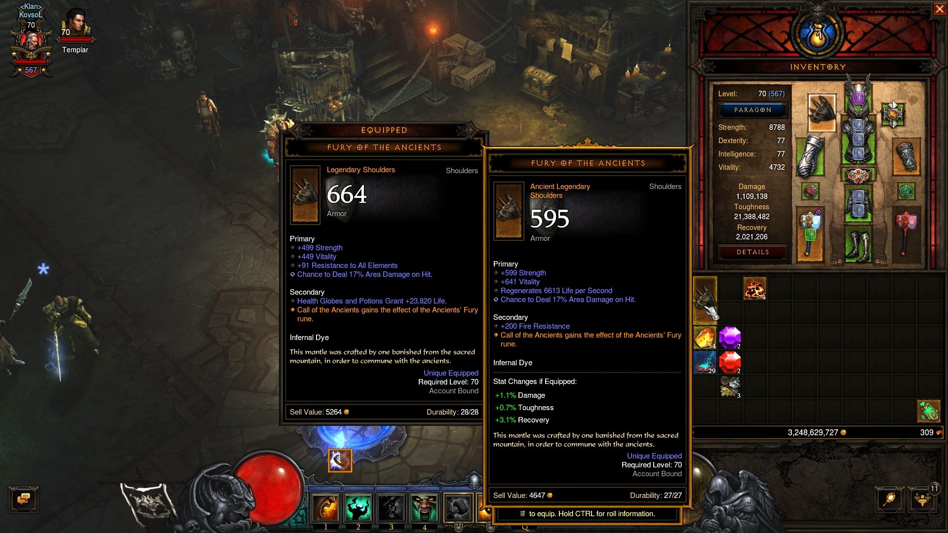 Ez az első szezonom, és előtte kieg megjelenésekor toltam utoljára a játékkal. Nekem hota barbom van, publikon 60-65-ös 4főst szoktam menni, és eddig 55-os GR is alig ment le soloban, mert mindig összecsuktak a mobok. Tegnap meglett a második unity és beraktam a templáromnak, meg magamnak a kockába, és nekivágtam egy gr 57-nek, mondom csak próbálok egy egyéni rekordot soloban. Halál nélkül lement 8 perc alatt, pedig az elitek elég szopatósak voltak, és lerázni se bírtam őket a szűk katakombákban.