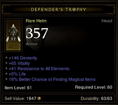 Tegnap 170 óra játék után végre esett egy tényleg értékesebbnek tűnő legendary nekem is. Andariel's Visage sapi. Meggazdagodni ebből sem fogok, de ahogy nézem olyan 5-6 millától kezdődnek hasonlók.