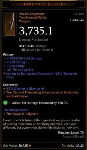 Magasabbra csak azért nem merek menni mert kevés a toughness.A barbárom is hasonló csak másik irányba, ott bármiben benne állok vele csak nincs elég DPS a magasabb szintekhez. (Illetve ott nincs meg egy 3 darabos set sem at IK/Wastes/Earth hármas egyikéből sem)