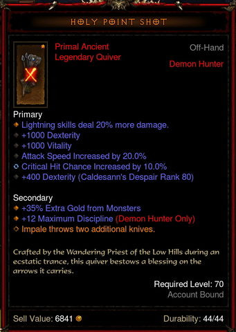 3 tokeletes primal mellett van meg rajta 4 nem ancient cucc, 1000+ paragonnal, ugy hogy csak dh-ztam a szezonban, nem talaltam jobbat. Pl. kozel 100 Hellfire amulettbol ez lett a legjobb. -
