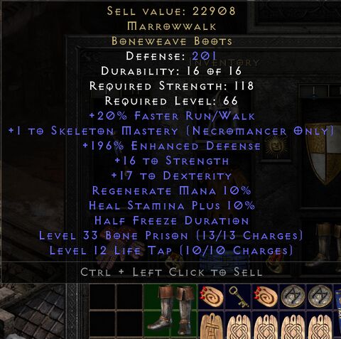 Most már a PB ágon +8 van cuccból, így 1 BA + 20 BP felállásban 415 sebzésig nyel el. Nem létszükséglet, de Summon necro-nál ~70 skill pont elköltése után úgy sincs mire tenni.