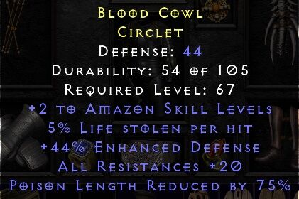 A Sorc-cal, ha találtam fehér diadem-et v. tiara-t area 85-s területen, és odaadtam imbue-ra Charsi-nak, akkor mind a három (n, nm, h) nehézségi szint után Druid skilles lett.