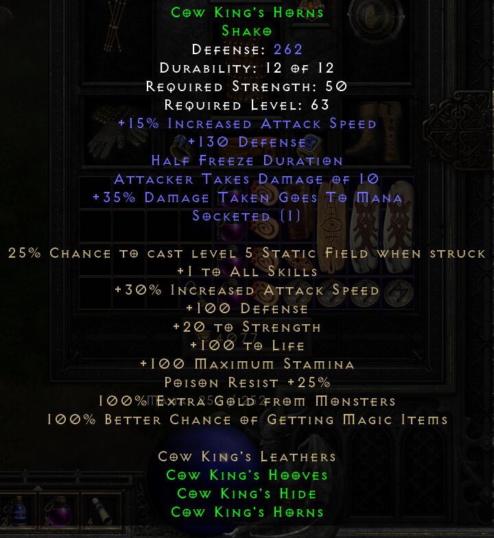 Meg számtalan használható unique (stormshield, arach, shako, mara, metalgrid, seraph, soj, bk5) meg csomó hasznontalan tc lvl 87 item is. -