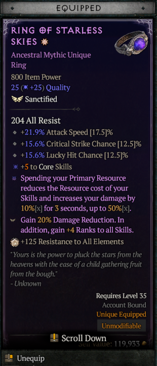 Esetleg akinek van Ancestral Seal of the Second Trumpet-je jó százalékkal, vagy passzívos Amulet Paladin skillekkel az jó lenne.