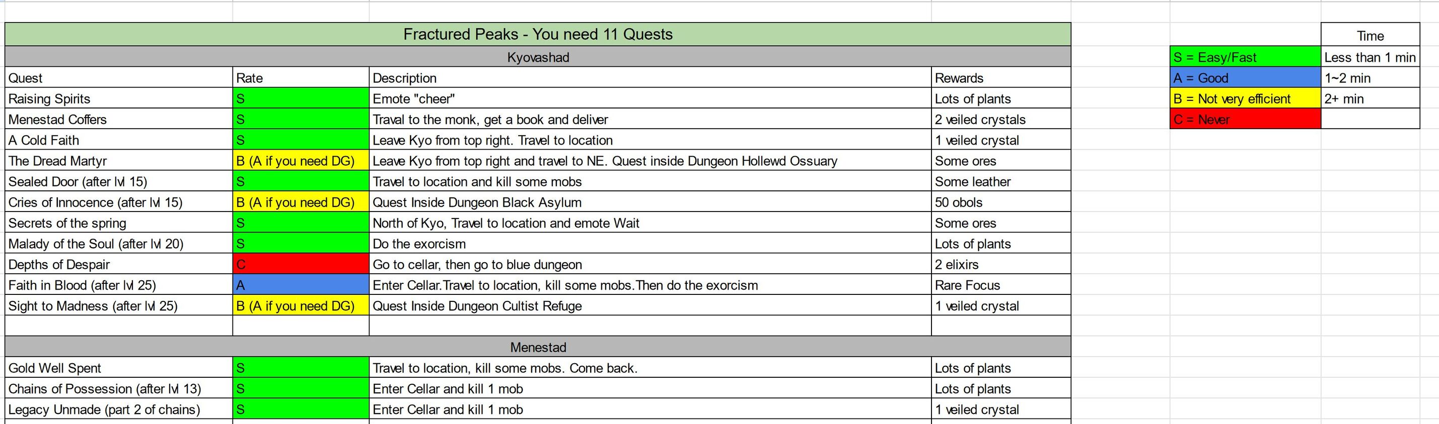 - nm dungeonök duplán és triplán unalmasak tudnak lenni, ha a játék szívat a random spawn-al, event-et indító shrine-okkal és ládákkal... (főleg, hogy pl az 5wave eventet is mindenképp 1 percig kell tolni és sebességből nem ér véget pl 20másodpercnél, ha addigra lement az 5 wave)endgame-be én tennék pár plusz opciót, hogy lehessen legalább 2-3-4-5 közül választani... volt, hogy a sok dungeon után elmentem inkább whisper-elni, ami sokkal kevesebb xp, de legalább felüdülés volt