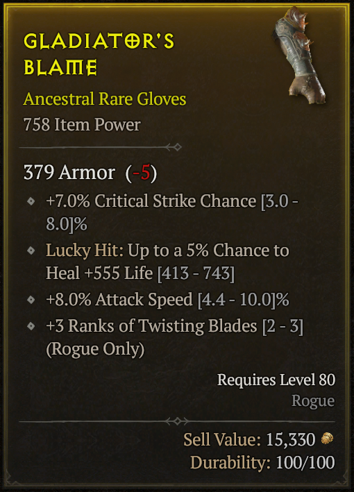 egész jó kis cucc lett, más kérdés hogy 13% fölötti bladedancer aspect-et én még nem találtam a játékban. ja és full elgatyásodtam a korábban vendorozott gatyó miatt is, amit 20 milláért nem akartam eladni, cserébe ráköltöttem többször annyit. szóval az még in progress, működik szépen a gold szipka