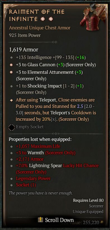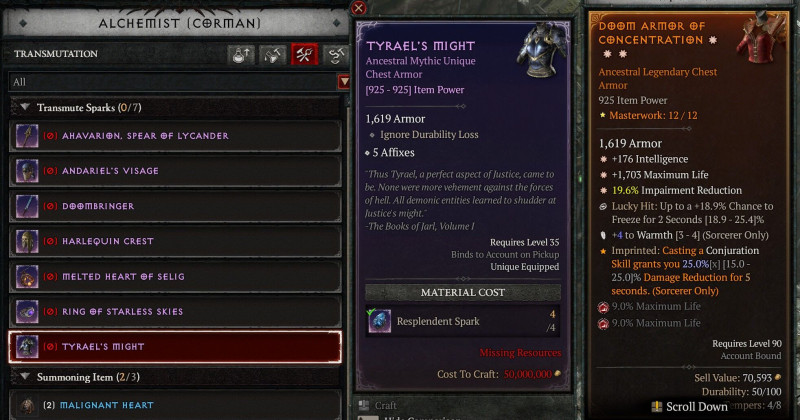 Legyűrtem az über Lilith-et. Most van 4 Sparkom és 50 milláért tudnék craftolni itemet. A pénz nincs meg de hamar össze szedem. A build szerint a Tyrael's Might hiányzik még, de nem lenne kötelező. Az a kérdésem érdemes lenne a craftolni a Tyrael's Might, ha ilyen páncélom van ? Vagy mást vagy inkább semmit?