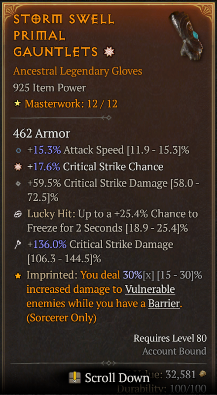 Van 3 db 100as karim: ww barbár, lightning spear sorci, landslider druida. Mindel t6on akadtam meg. Pedig van mar 4 mythic uniquem is.