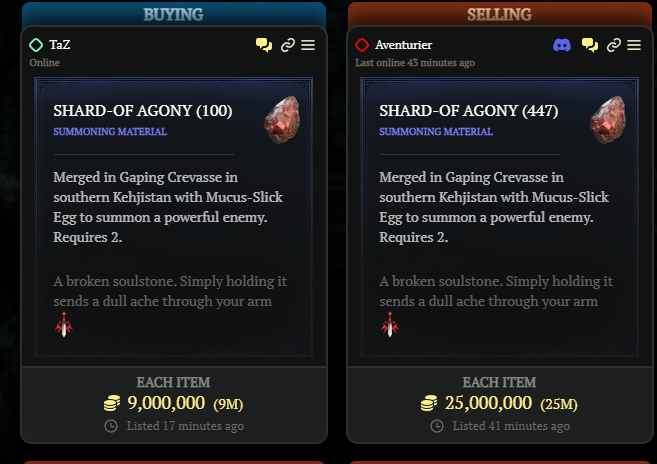 Diablo traden csak fogyatékosok vannak...Kitettem reggel egy hirdetést , hogy vennék duriel matit azóta jönnek az üzenetek ,hogy ö bizony megvenné AZT amit én is vétel céljából keresek.. Pedig elég nagy betűkkel írja ,hogy BUY....