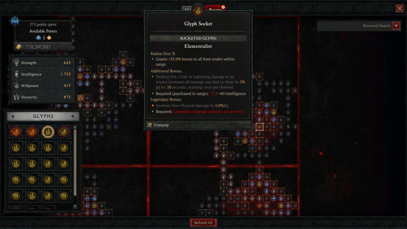 Sziasztok, indítottam egy új karaktert(sorcerer). Paragon táblánál az Elementalist(13 szintű) Glyph be rakok a helyére semmi nem változik nem ad bónuszt. Bármelyik másikal nincs semmi gond. Mi a hiba, mit néztem el?