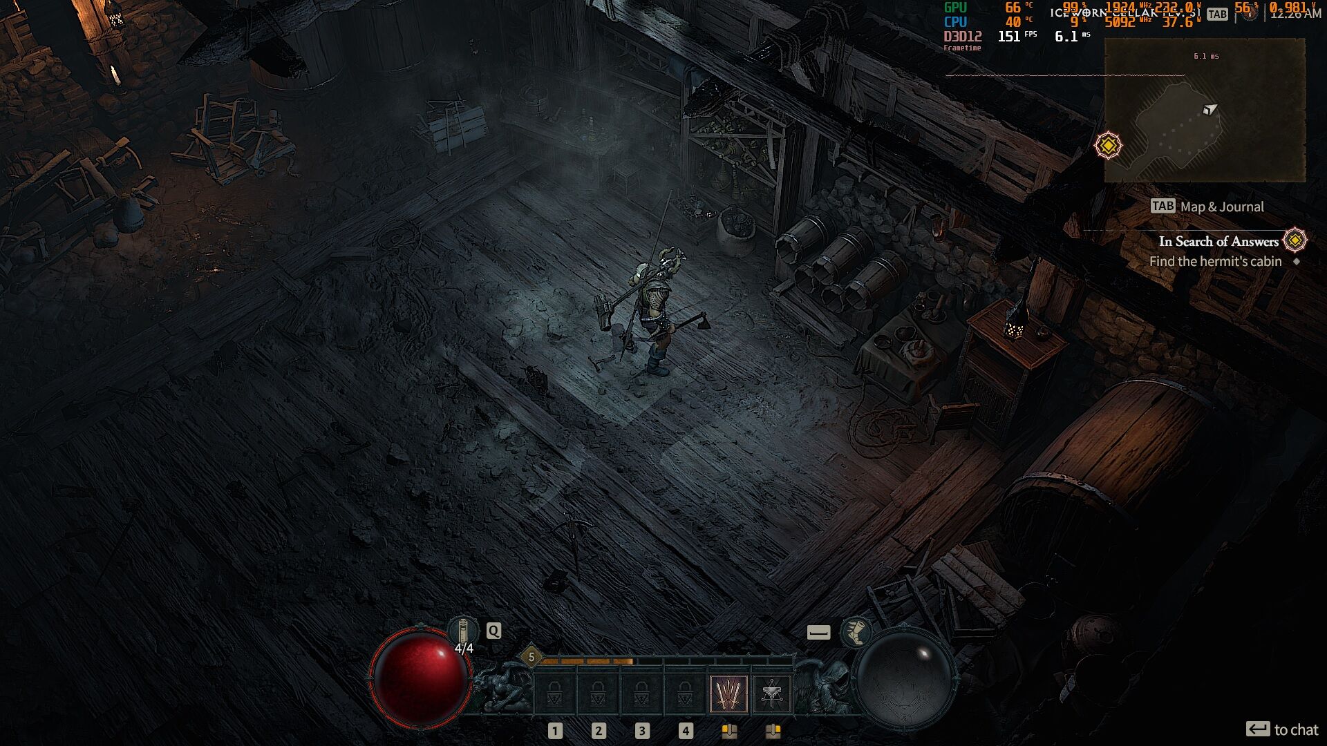 "We're not in-depth game testers, so our experiences are subjective, but performance on "High" settings with a three year-old graphics card (RX 5700 XT) looked more than acceptable with our framerate being in the 70-90 range pretty much all the time. Things like dynamic weather effects added a lot of visual depth and immersion, the same goes for shadow effects. Again, this is all subjective, and we advise you to wait for Blizzard's official specifications - however, we can somewhat confirm expectations that Diablo IV should run on a lot of different systems while still looking great."