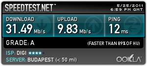 40MBit/sec -es Digikábel előfizetésem van. Routerből UTP-vel kötöttem össze a laptopom.
