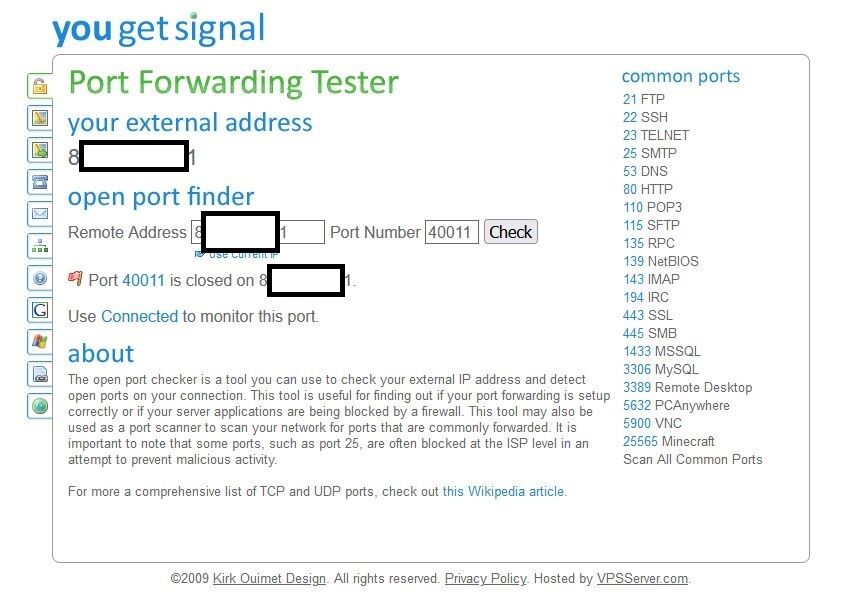 Felveszem őket a port forwarding táblába, ellenőrzöm őket és nyitva vannak.
