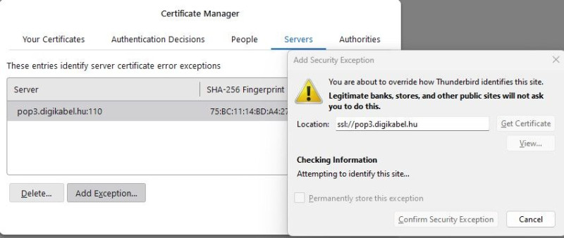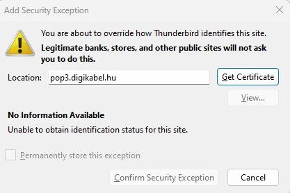 Régóta Digi-s vagyok, így van még hozzá digikabel.hu-s e-amil címem is. Ez a fiók be is van állítva nálam a Thunderbird-ben PC-n. Ami "furcsa": a tűzfalam (ESET Internet Security) kb. egy hete naponta többször is feldobja, hogy a ssl://pop3.digikabel.hu cím blokkolva, mert szerinte "Anti-Phising" gyanús a dolog és mert ez a cím "Feketelistán" van és a probléma forrásának nyilván a Thunderbird applikációt jelöli meg a PC-men.