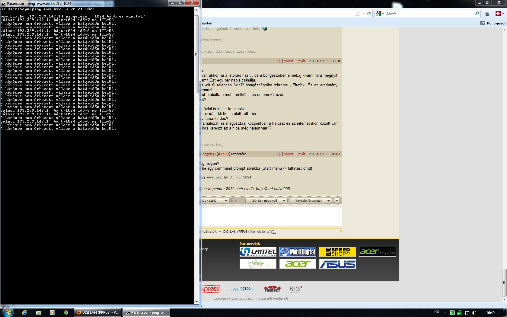 A fenti képet küldheted is nekik, mondd, hogy packetloss-od (csomagveszteség) van. Nálam is volt ilyen, kijöttek, a szekrényükben megcsinálták. Semmi extra.