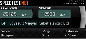 Internetnél nálam is előjött az a probléma, hogy indítás után 1 percre meghalt a gép, majd rendesen beindult utána, de kiszedtem a pipát a helyi kapcsolatnál a TCP elől és jó lett, rendesen indul.Szakadozás, szünet nem volt, eddig jó. Időm nem volt még annyira tesztelgetni, feltöltésként próbáltam a Freemail irányába, olyan 13-14 Mbitet hoz (a 20/10-es), viszont Chello irányába MSN-en haverhoz csak stabil 2MBitet hoz. Amúgy a magyar weboldalak kicsit gyorsabban működnek mint a Chellonál, valahogy gyorsabban reagál, külföldi oldalakra pedig egyértelműen gyorsabb a sebesség, még a 8 éves unokaöcsém is észrevette, hogy sokkal gyorsabban töltődnek be a dolgok.