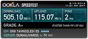 Ezt most mértem, ez egész jó most, a ping egy kicsit nem tetszik, de a sebességre nincs panasz.